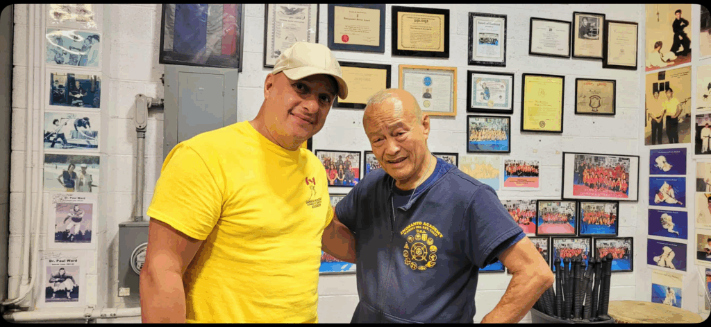 Yacine Tebdjoune (représentant du nunchaku de combat au Canada) avec Dan Inosanto qui a travaillé le nunchaku avec Bruce lee